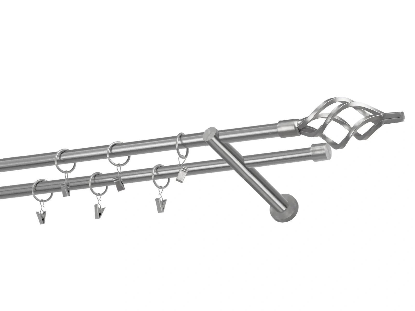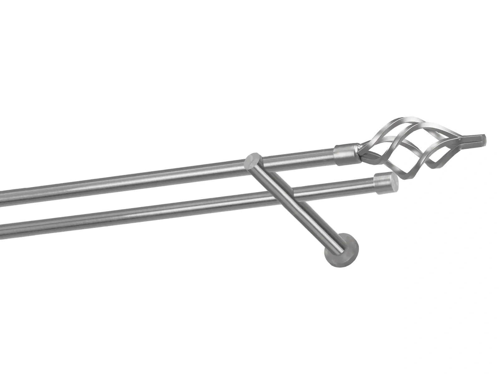 Felületkezelt kétsoros fém függönykarnis satin (matt nikkel) árnyalat. Minőségi galvanizált fém függönykarnisok. A galvanizálás nagyobb felületi szilárdságot, nagyobb karcállóságot és sima felületet biztosít. Készletként szállítjuk.