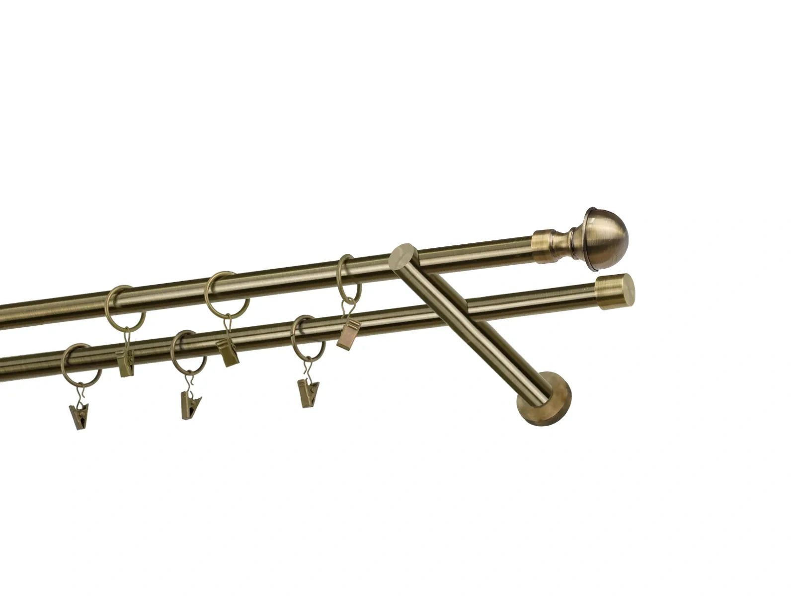 Felületkezelt kétsoros fém függönykarnis antik (matt arany) árnyalat. Minőségi galvanizált fém függönykarnisok. A galvanizálás nagyobb felületi szilárdságot, nagyobb karcállóságot és sima felületet biztosít. Készletként szállítjuk.