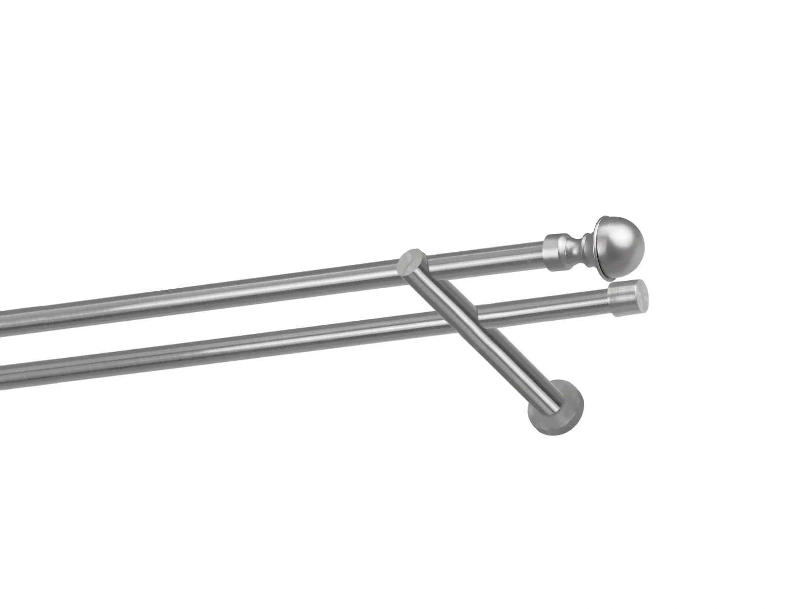 Felületkezelt kétsoros fém függönykarnis satin (matt nikkel) árnyalat. Minőségi galvanizált fém függönykarnisok. A galvanizálás nagyobb felületi szilárdságot, nagyobb karcállóságot és sima felületet biztosít. Készletként szállítjuk.