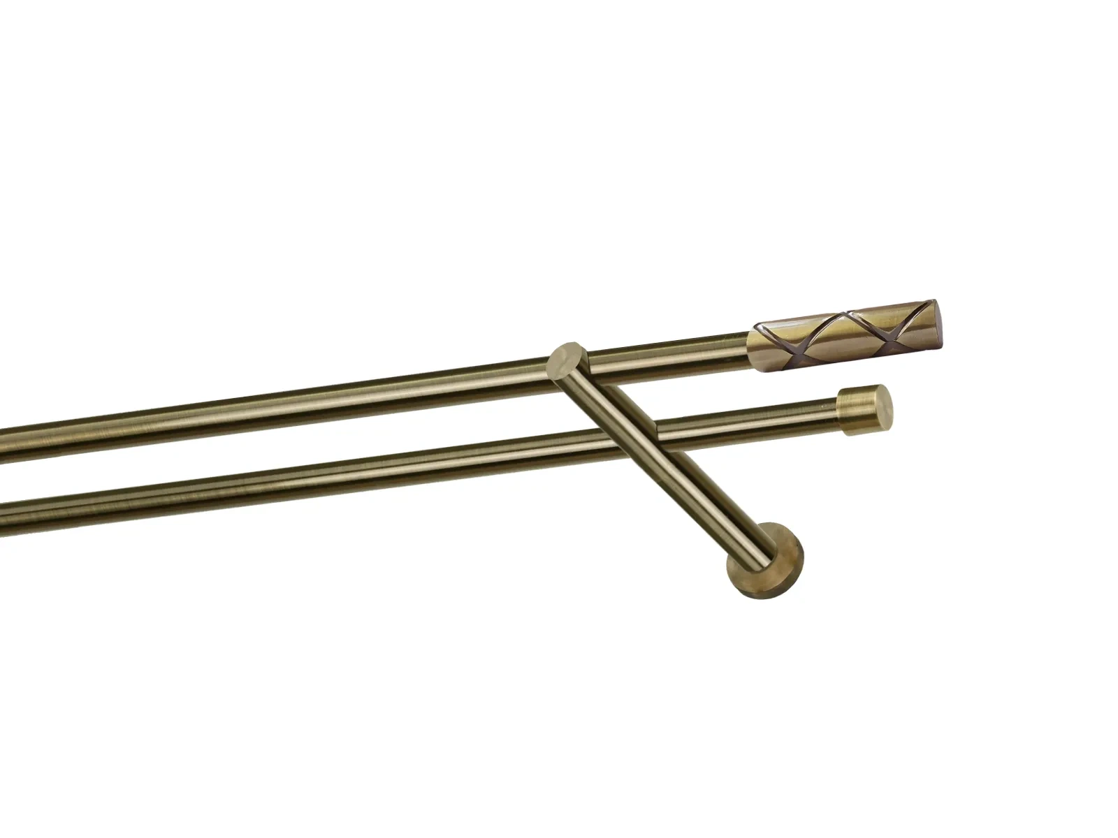Felületkezelt kétsoros fém függönykarnis antik (matt arany) árnyalat. Minőségi galvanizált fém függönykarnisok. A galvanizálás nagyobb felületi szilárdságot, nagyobb karcállóságot és sima felületet biztosít. Készletként szállítjuk.