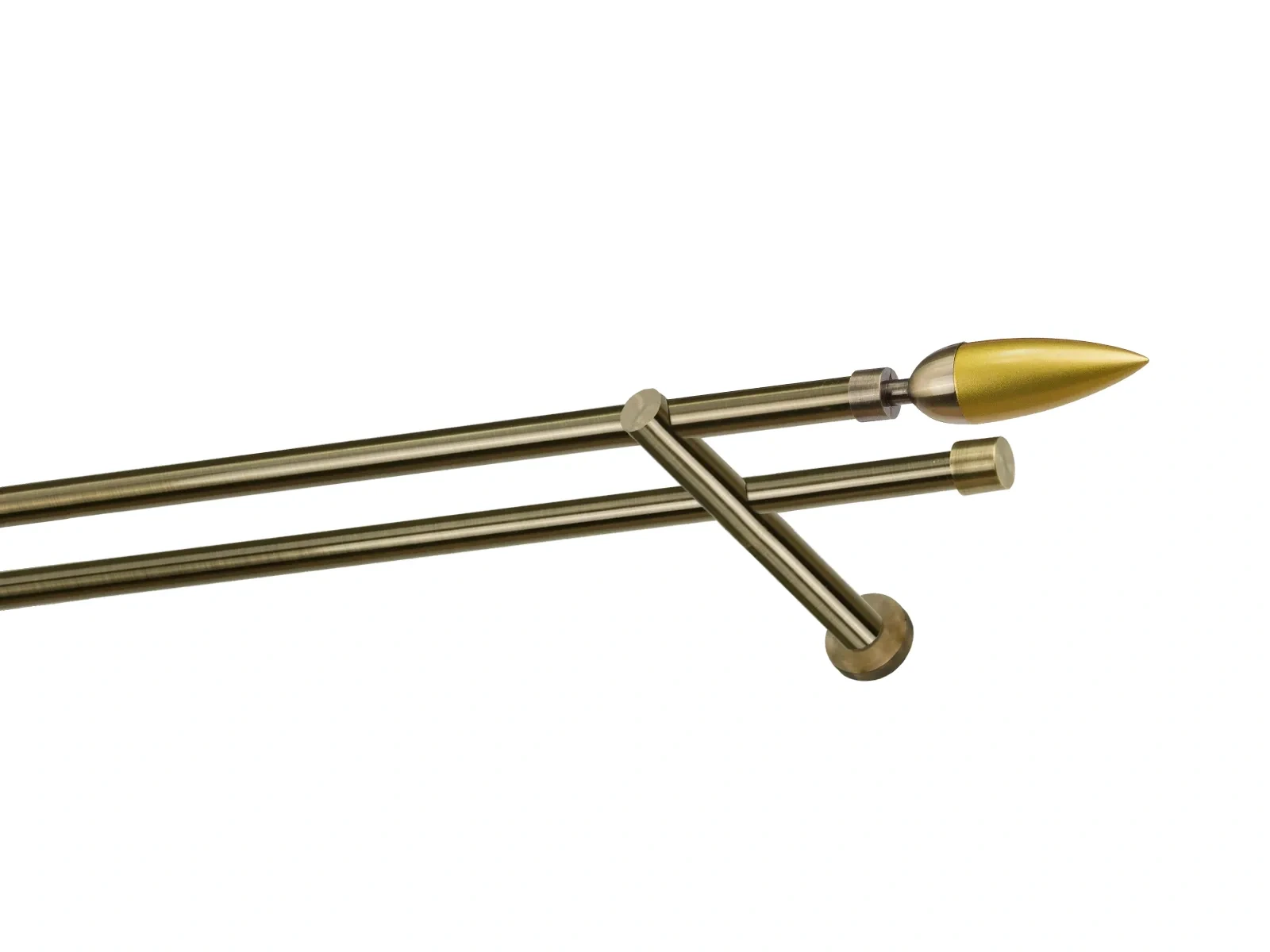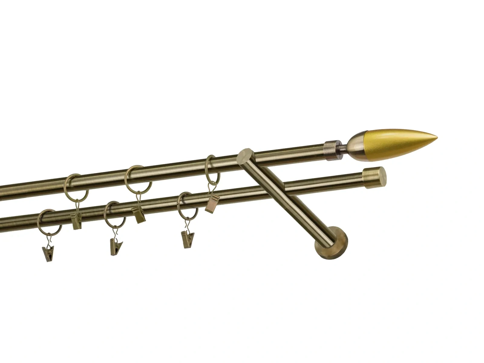 Felületkezelt kétsoros fém függönykarnis antik (matt arany) árnyalat. Minőségi galvanizált fém függönykarnisok. A galvanizálás nagyobb felületi szilárdságot, nagyobb karcállóságot és sima felületet biztosít. Készletként szállítjuk.