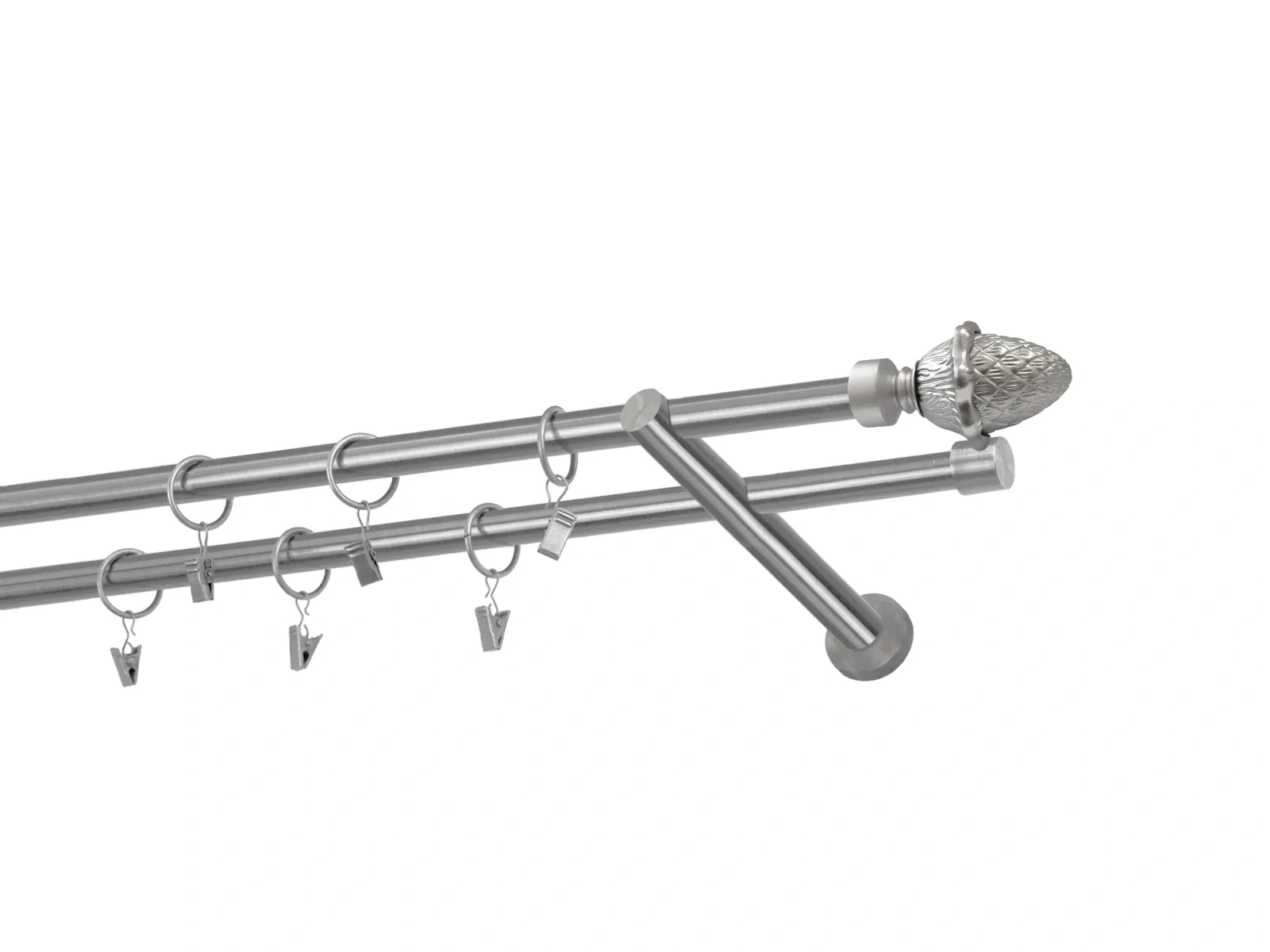 Felületkezelt kétsoros fém függönykarnis satin (matt nikkel) árnyalat. Minőségi galvanizált fém függönykarnisok. A galvanizálás nagyobb felületi szilárdságot, nagyobb karcállóságot és sima felületet biztosít. Készletként szállítjuk.