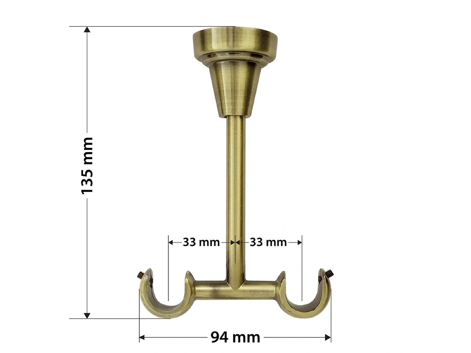 Felületkezelt kétsoros fém függönykarnis antik (matt arany) árnyalat. Minőségi galvanizált fém függönykarnisok. A galvanizálás nagyobb felületi szilárdságot, nagyobb karcállóságot és sima felületet biztosít. Készletként szállítjuk.