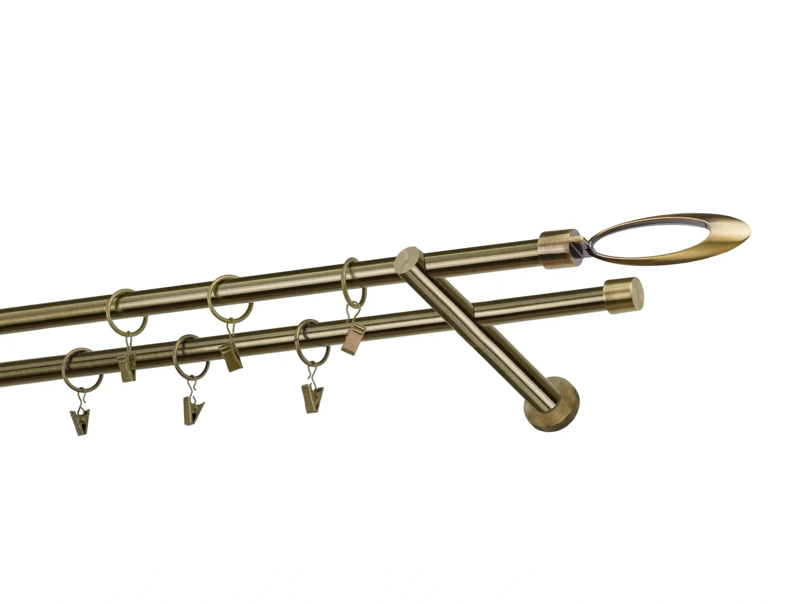 Felületkezelt kétsoros fém függönykarnis antik (matt arany) árnyalat. Minőségi galvanizált fém függönykarnisok. A galvanizálás nagyobb felületi szilárdságot, nagyobb karcállóságot és sima felületet biztosít. Készletként szállítjuk.