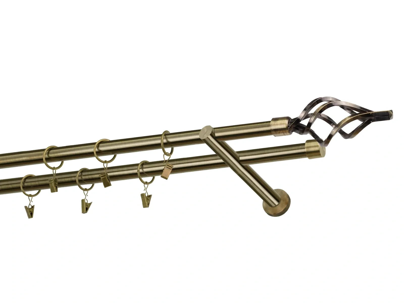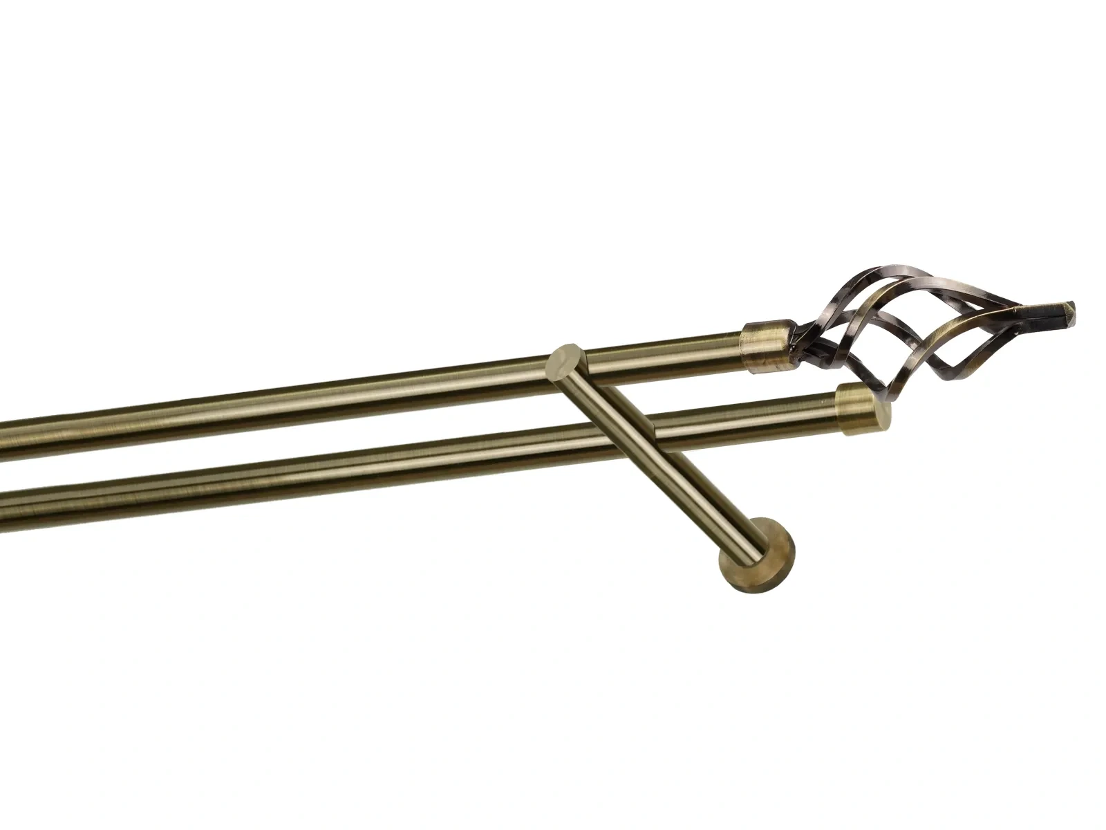 Felületkezelt kétsoros fém függönykarnis antik (matt arany) árnyalat. Minőségi galvanizált fém függönykarnisok. A galvanizálás nagyobb felületi szilárdságot, nagyobb karcállóságot és sima felületet biztosít. Készletként szállítjuk.