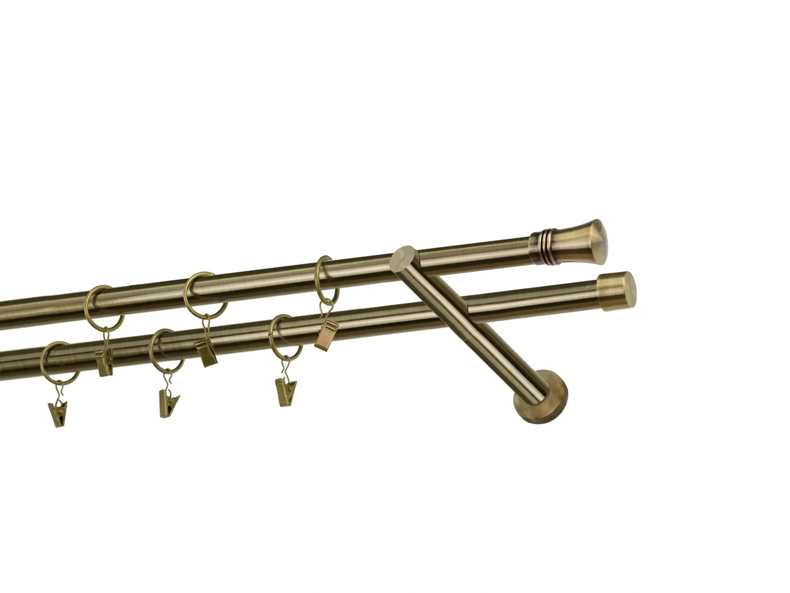 Felületkezelt kétsoros fém függönykarnis antik (matt arany) árnyalat. Minőségi galvanizált fém függönykarnisok. A galvanizálás nagyobb felületi szilárdságot, nagyobb karcállóságot és sima felületet biztosít. Készletként szállítjuk.