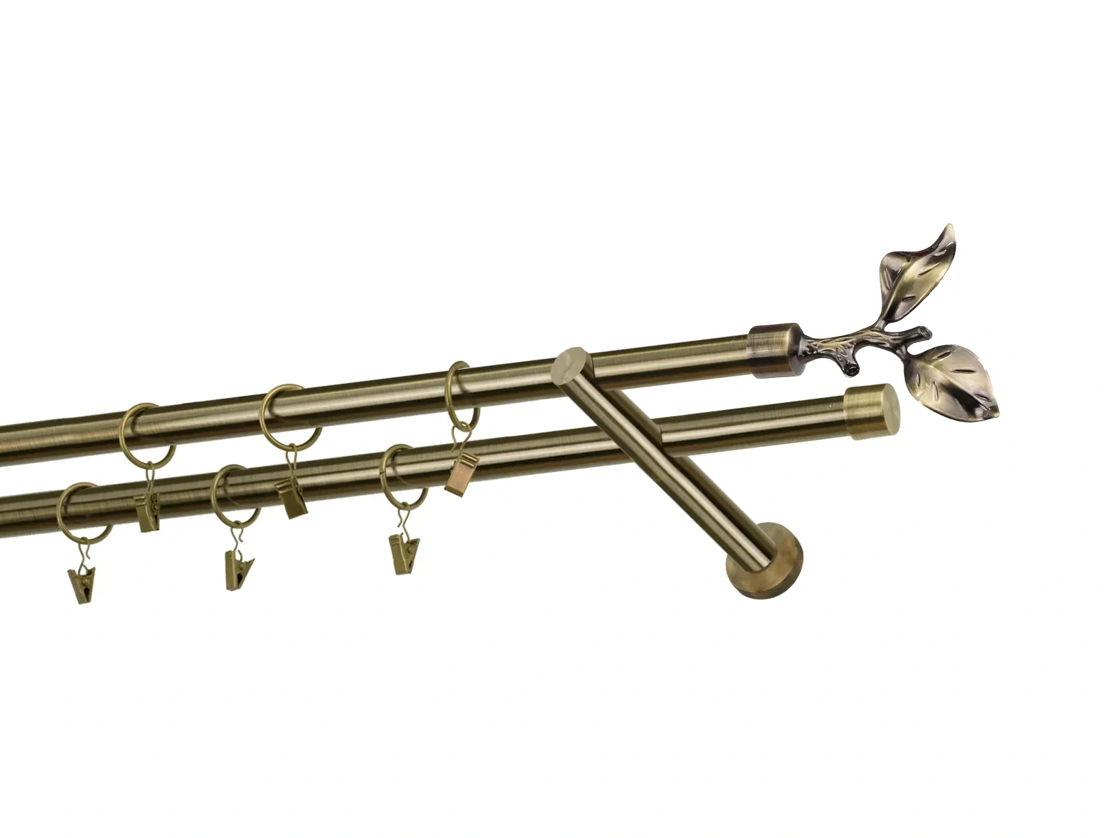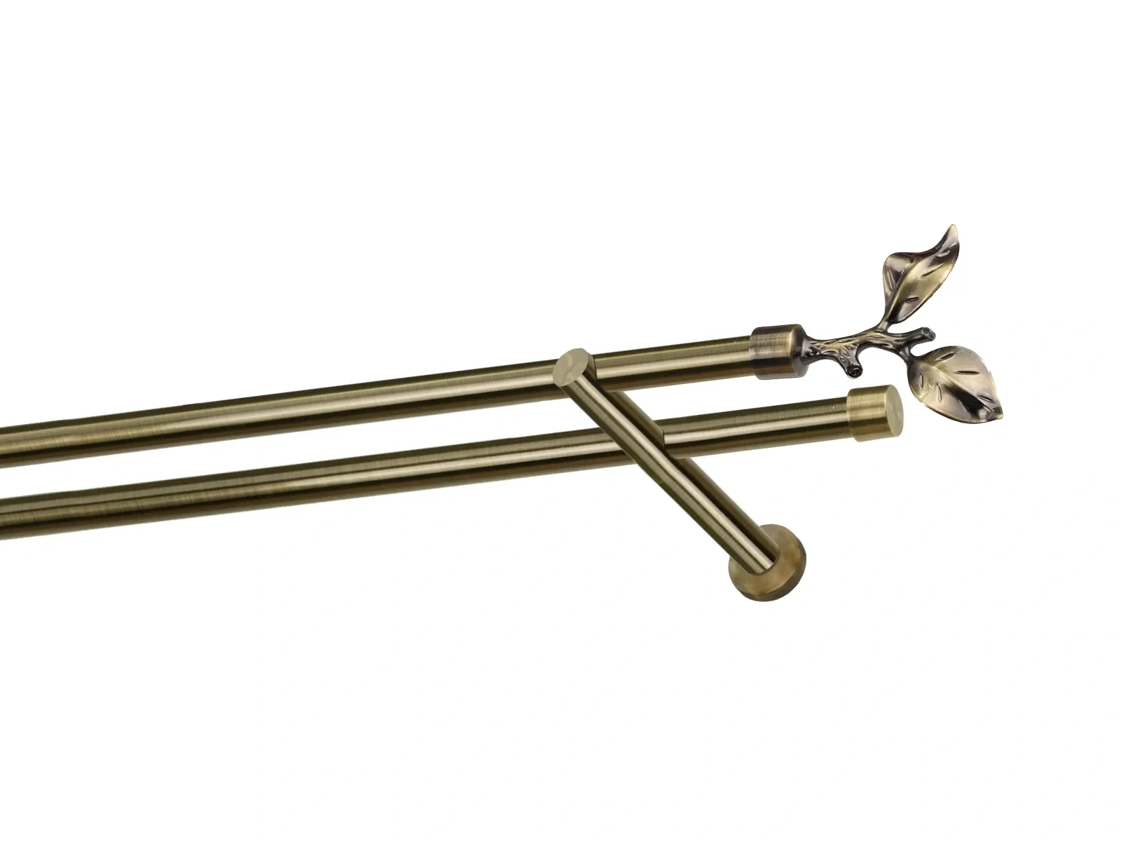 Felületkezelt kétsoros fém függönykarnis antik (matt arany) árnyalat. Minőségi galvanizált fém függönykarnisok. A galvanizálás nagyobb felületi szilárdságot, nagyobb karcállóságot és sima felületet biztosít. Készletként szállítjuk.