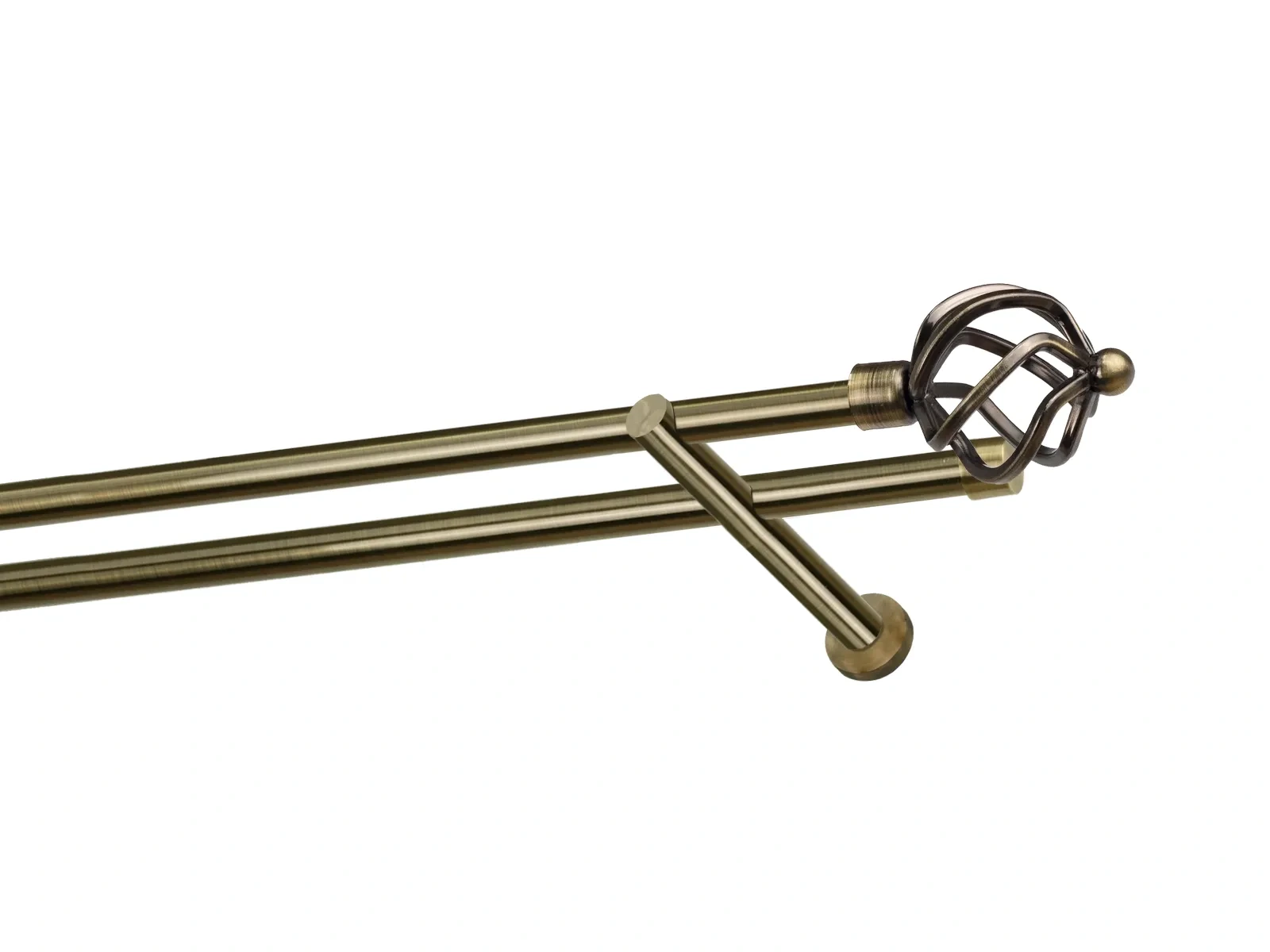 Felületkezelt kétsoros fém függönykarnis antik (matt arany) árnyalat. Minőségi galvanizált fém függönykarnisok. A galvanizálás nagyobb felületi szilárdságot, nagyobb karcállóságot és sima felületet biztosít. Készletként szállítjuk.