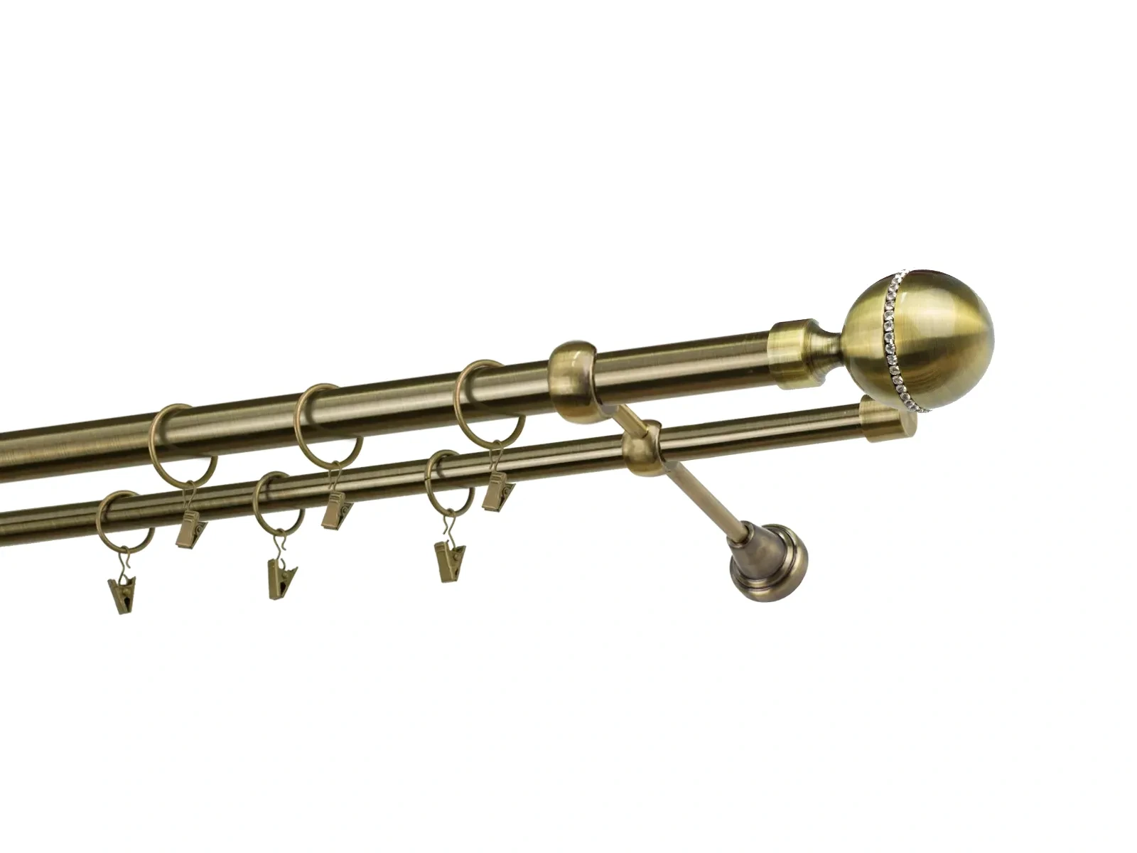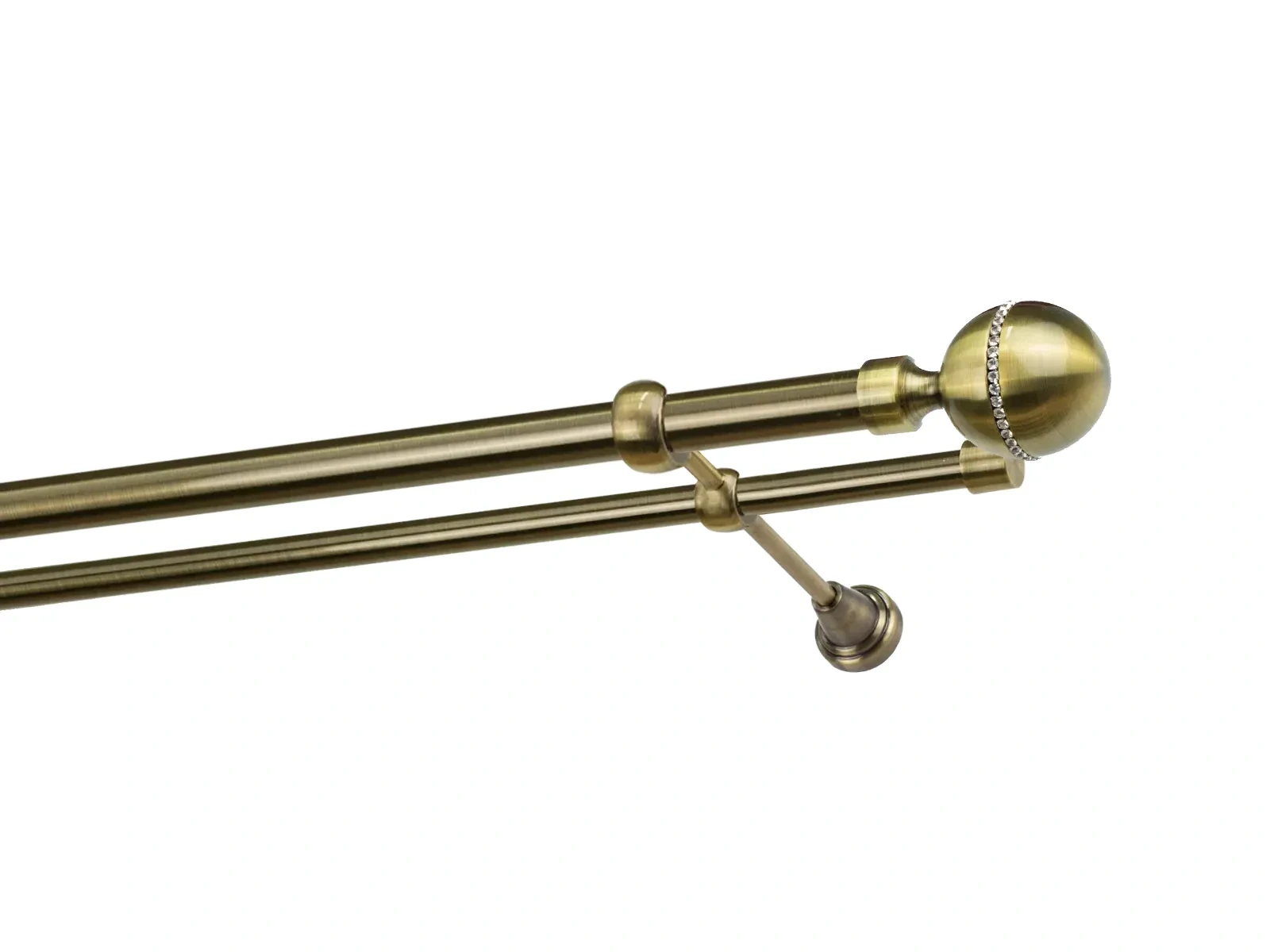 Felületkezelt kétsoros fém függönykarnis antik (matt arany) árnyalat. Minőségi galvanizált fém függönykarnisok. A galvanizálás nagyobb felületi szilárdságot, nagyobb karcállóságot és sima felületet biztosít. Készletként szállítjuk.