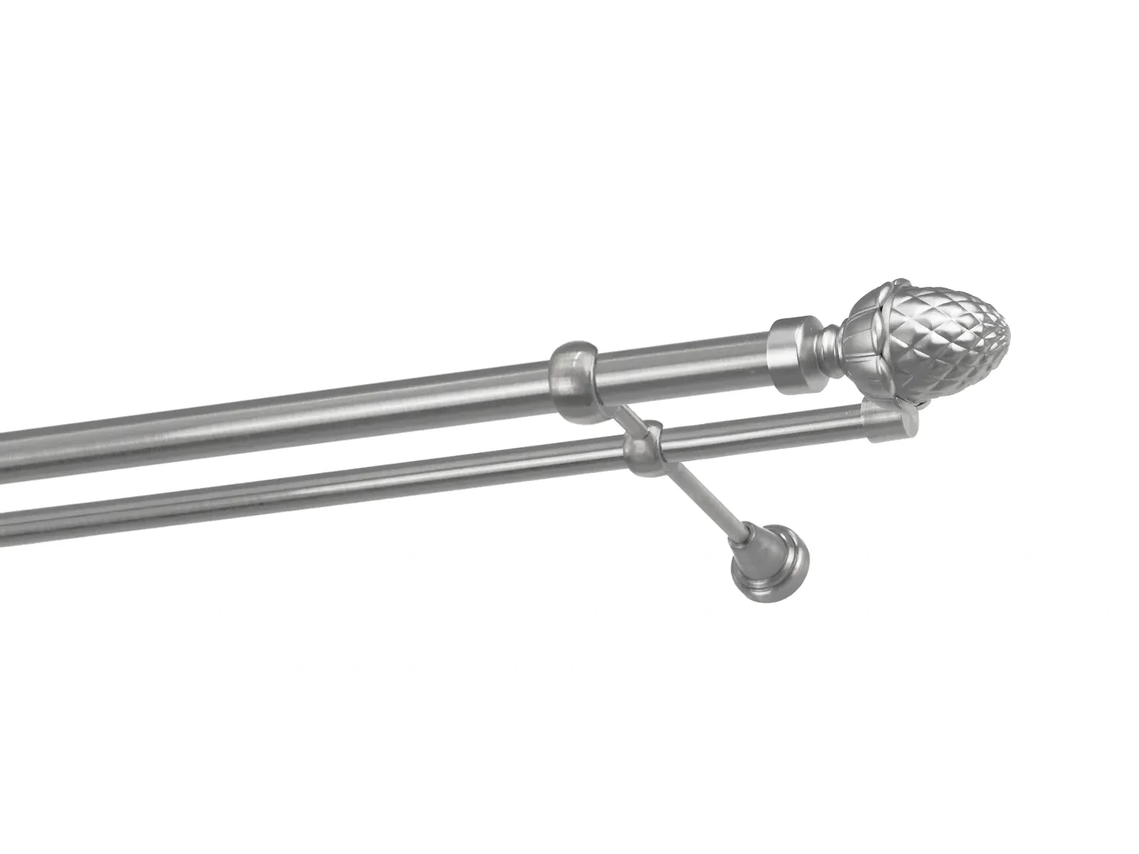 Felületkezelt kétsoros fém függönykarnis satin (matt nikkel) árnyalat. Minőségi galvanizált fém függönykarnisok. A galvanizálás nagyobb felületi szilárdságot, nagyobb karcállóságot és sima felületet biztosít. Készletként szállítjuk.