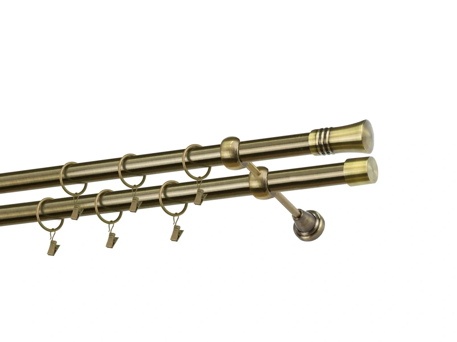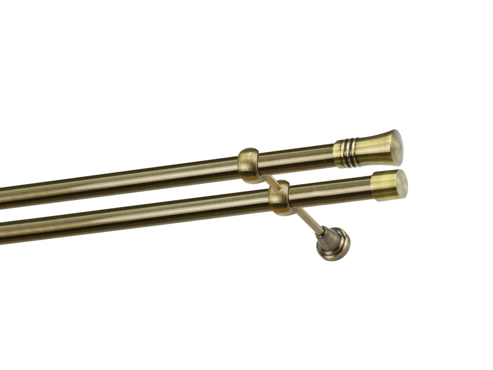 Felületkezelt kétsoros fém függönykarnis antik (matt arany) árnyalat. Minőségi galvanizált fém függönykarnisok. A galvanizálás nagyobb felületi szilárdságot, nagyobb karcállóságot és sima felületet biztosít. Készletként szállítjuk.