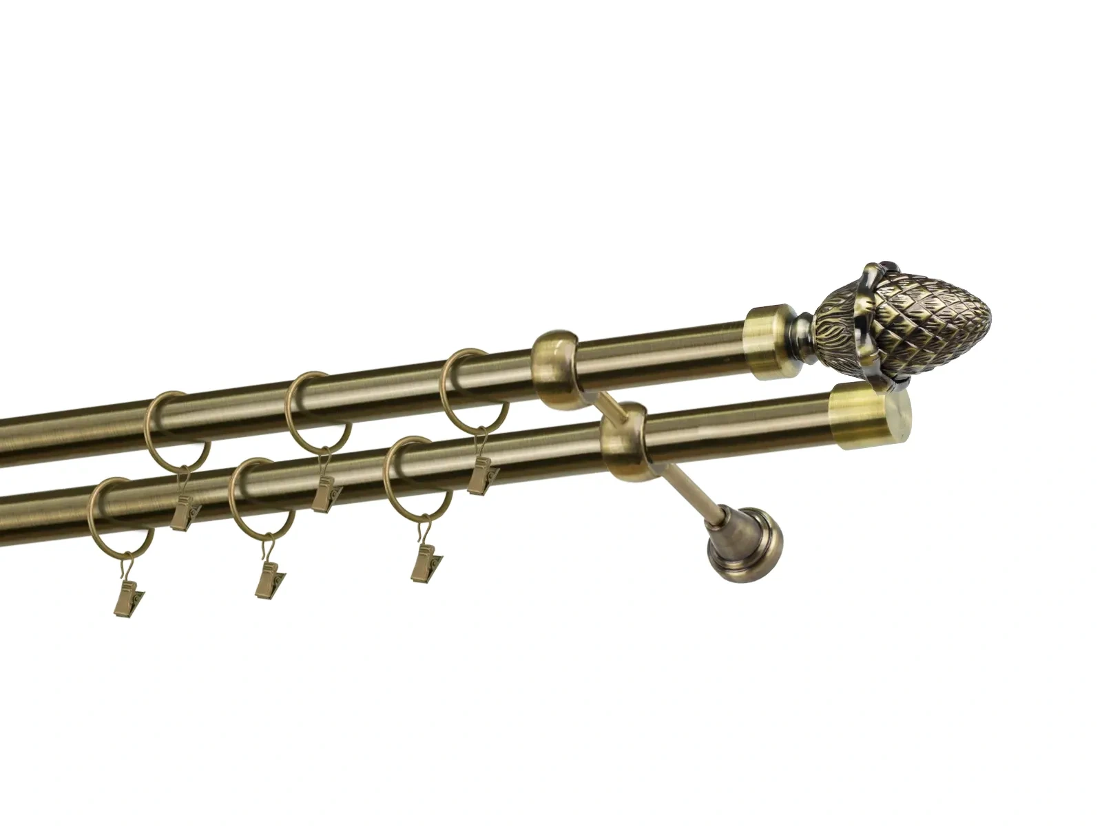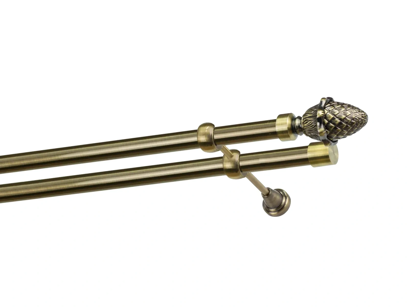 Felületkezelt kétsoros fém függönykarnis antik (matt arany) árnyalat. Minőségi galvanizált fém függönykarnisok. A galvanizálás nagyobb felületi szilárdságot, nagyobb karcállóságot és sima felületet biztosít. Készletként szállítjuk.
