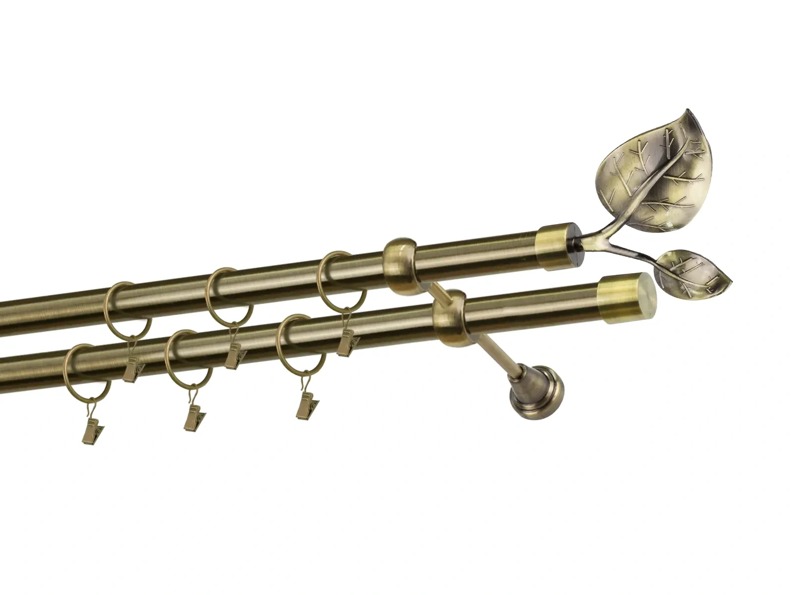 Felületkezelt kétsoros fém függönykarnis antik (matt arany) árnyalat. Minőségi galvanizált fém függönykarnisok. A galvanizálás nagyobb felületi szilárdságot, nagyobb karcállóságot és sima felületet biztosít. Készletként szállítjuk.