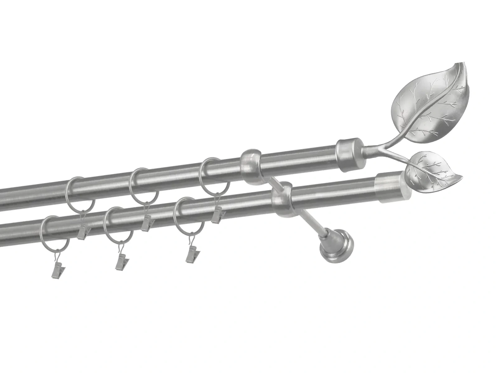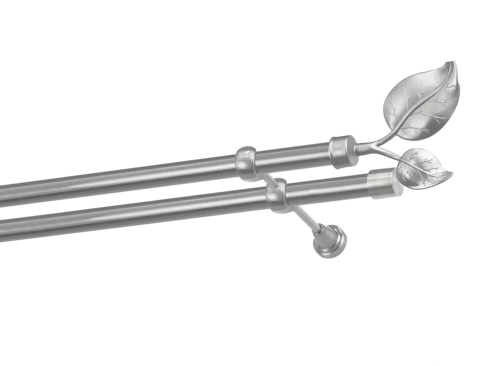 Felületkezelt kétsoros fém függönykarnis satin (matt nikkel) árnyalat. Minőségi galvanizált fém függönykarnisok. A galvanizálás nagyobb felületi szilárdságot, nagyobb karcállóságot és sima felületet biztosít. Készletként szállítjuk.
