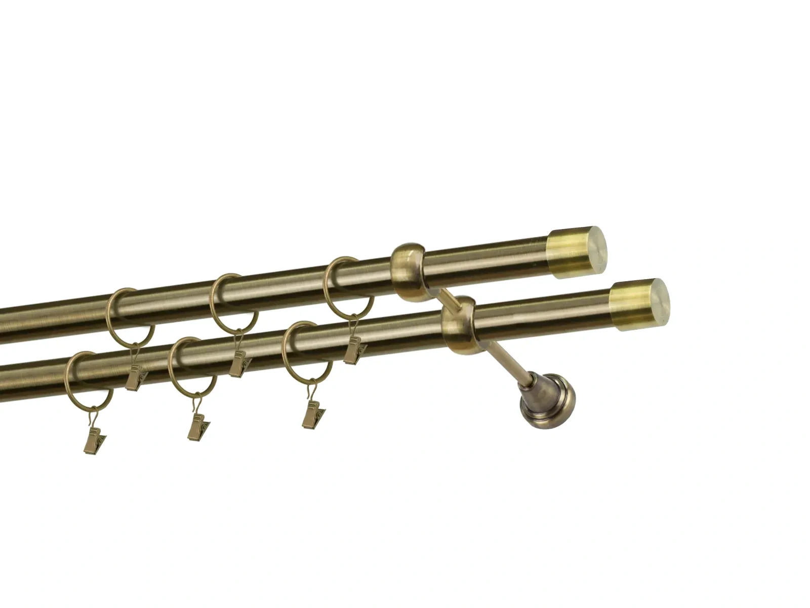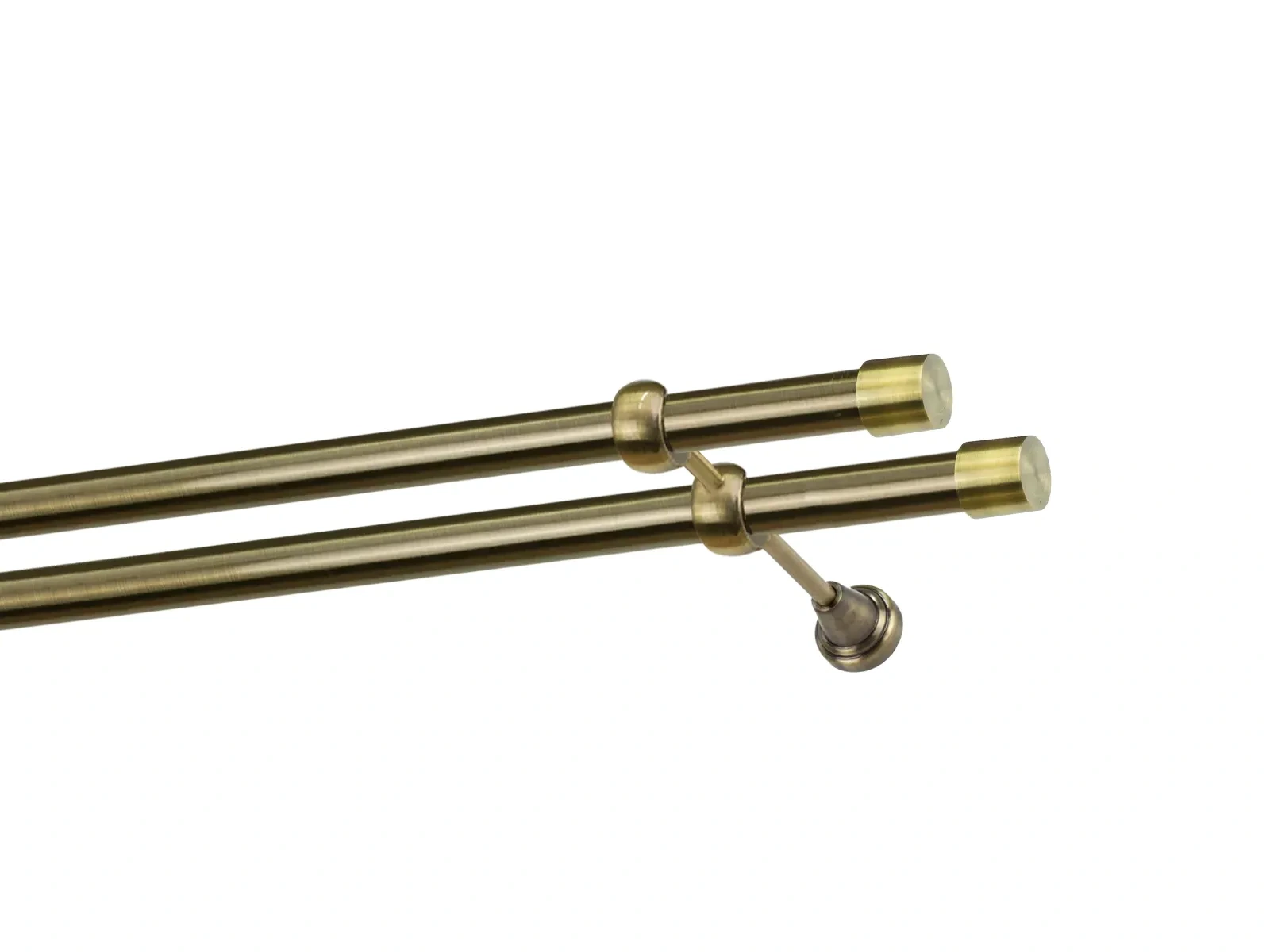 Felületkezelt kétsoros fém függönykarnis antik (matt arany) árnyalat. Minőségi galvanizált fém függönykarnisok. A galvanizálás nagyobb felületi szilárdságot, nagyobb karcállóságot és sima felületet biztosít. Készletként szállítjuk.