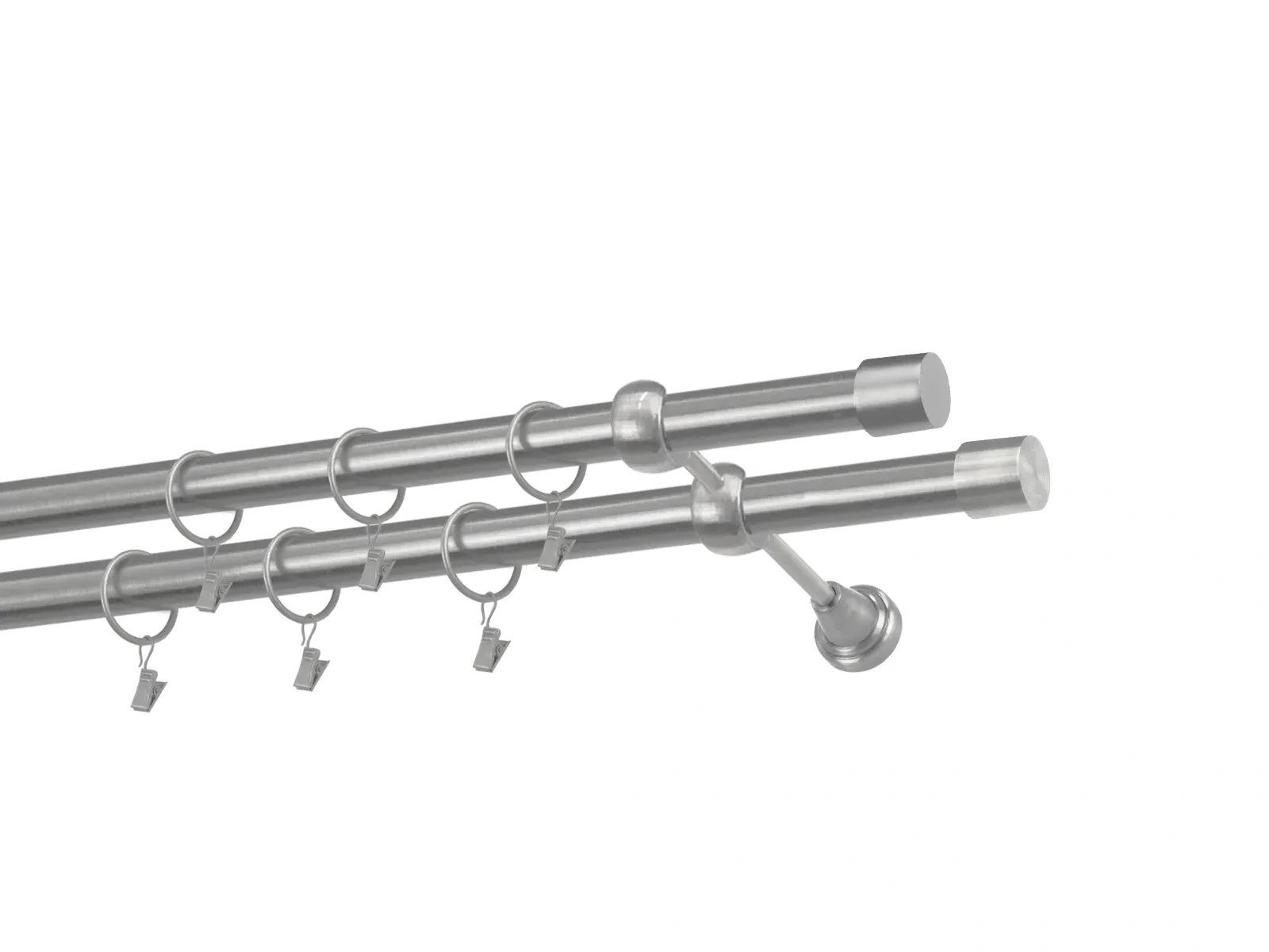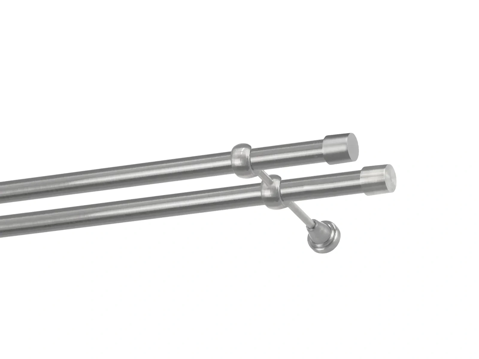 Felületkezelt kétsoros fém függönykarnis satin (matt nikkel) árnyalat. Minőségi galvanizált fém függönykarnisok. A galvanizálás nagyobb felületi szilárdságot, nagyobb karcállóságot és sima felületet biztosít. Készletként szállítjuk.