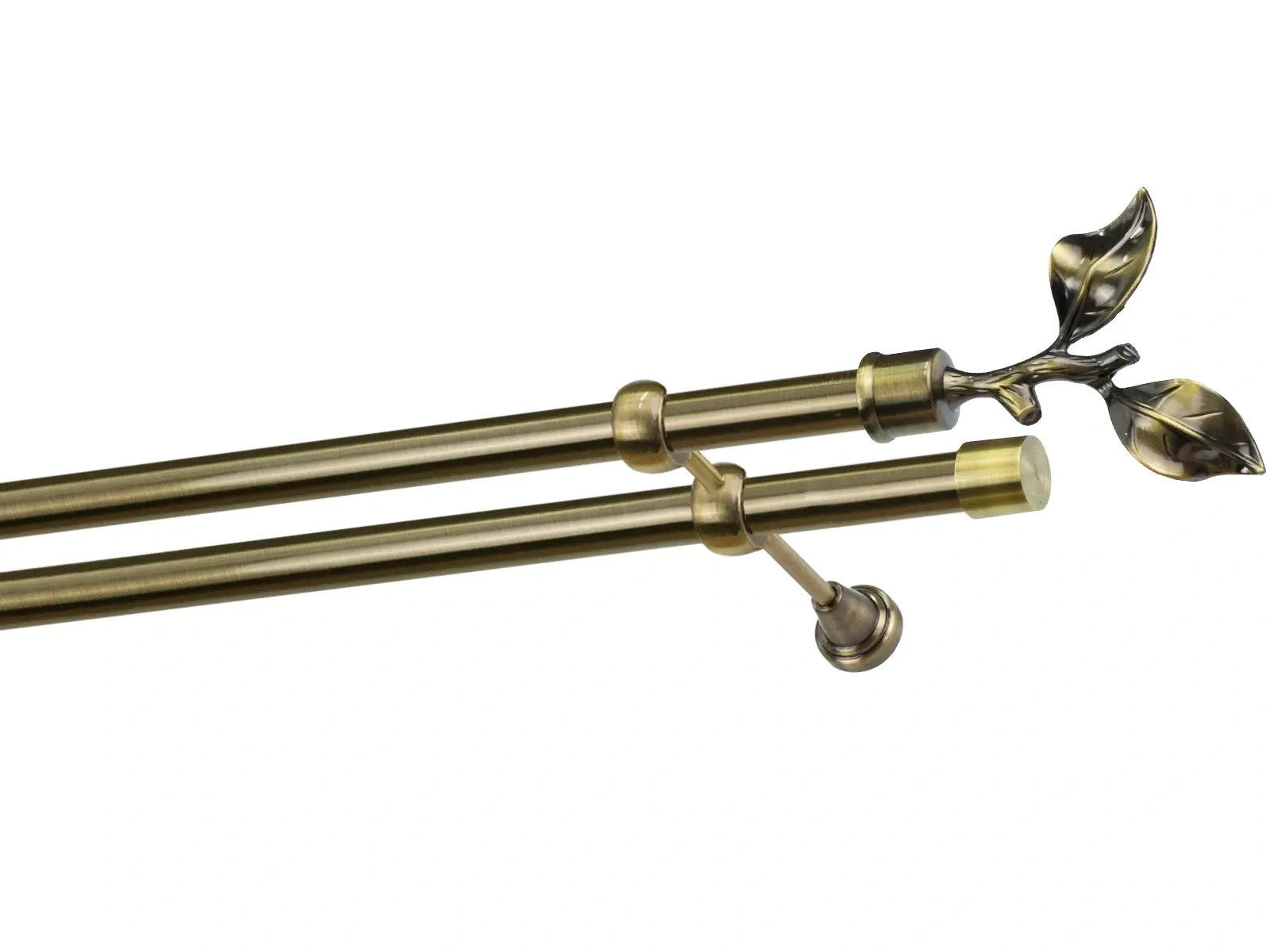 Felületkezelt kétsoros fém függönykarnis antik (matt arany) árnyalat. Minőségi galvanizált fém függönykarnisok. A galvanizálás nagyobb felületi szilárdságot, nagyobb karcállóságot és sima felületet biztosít. Készletként szállítjuk.