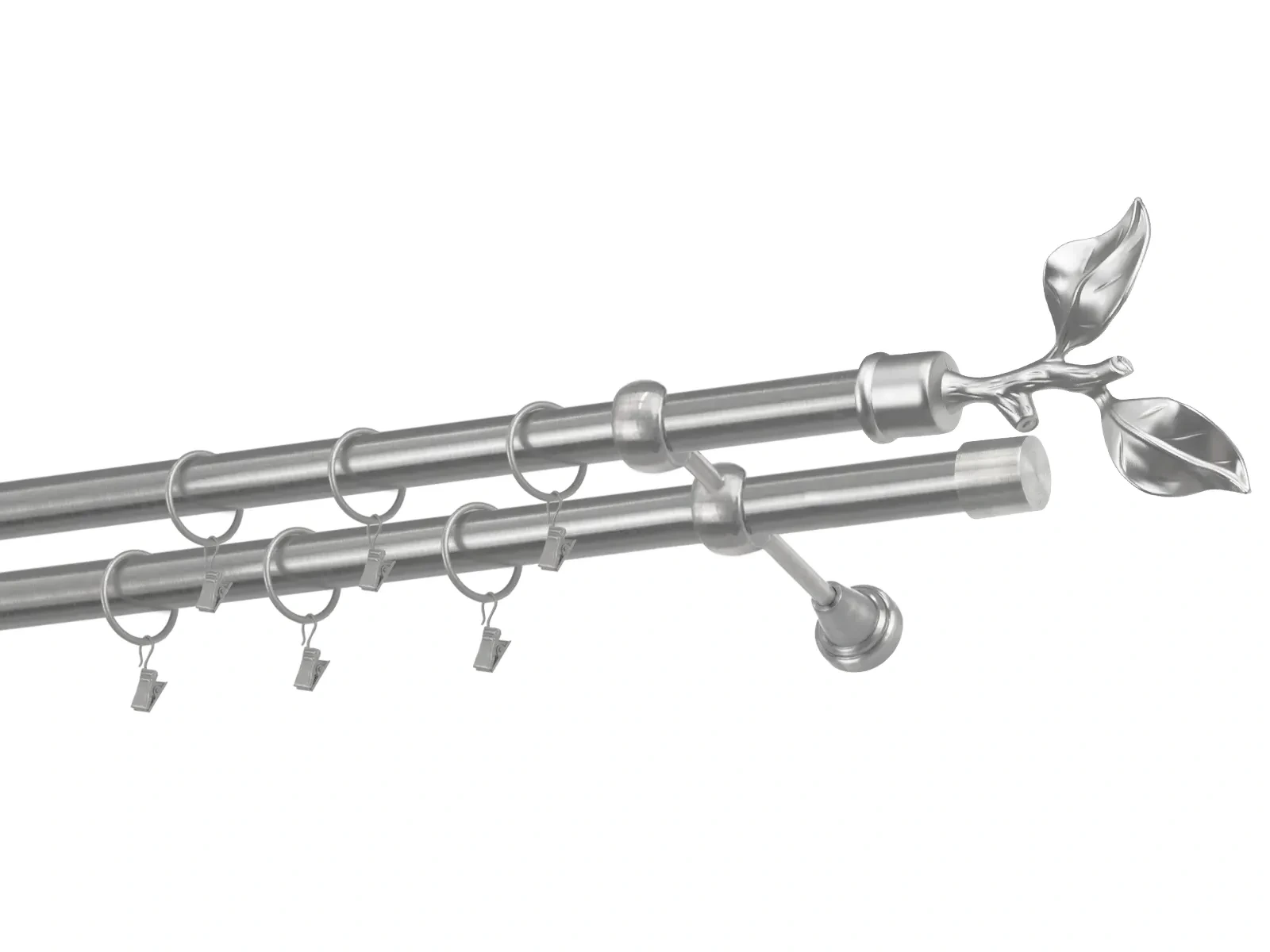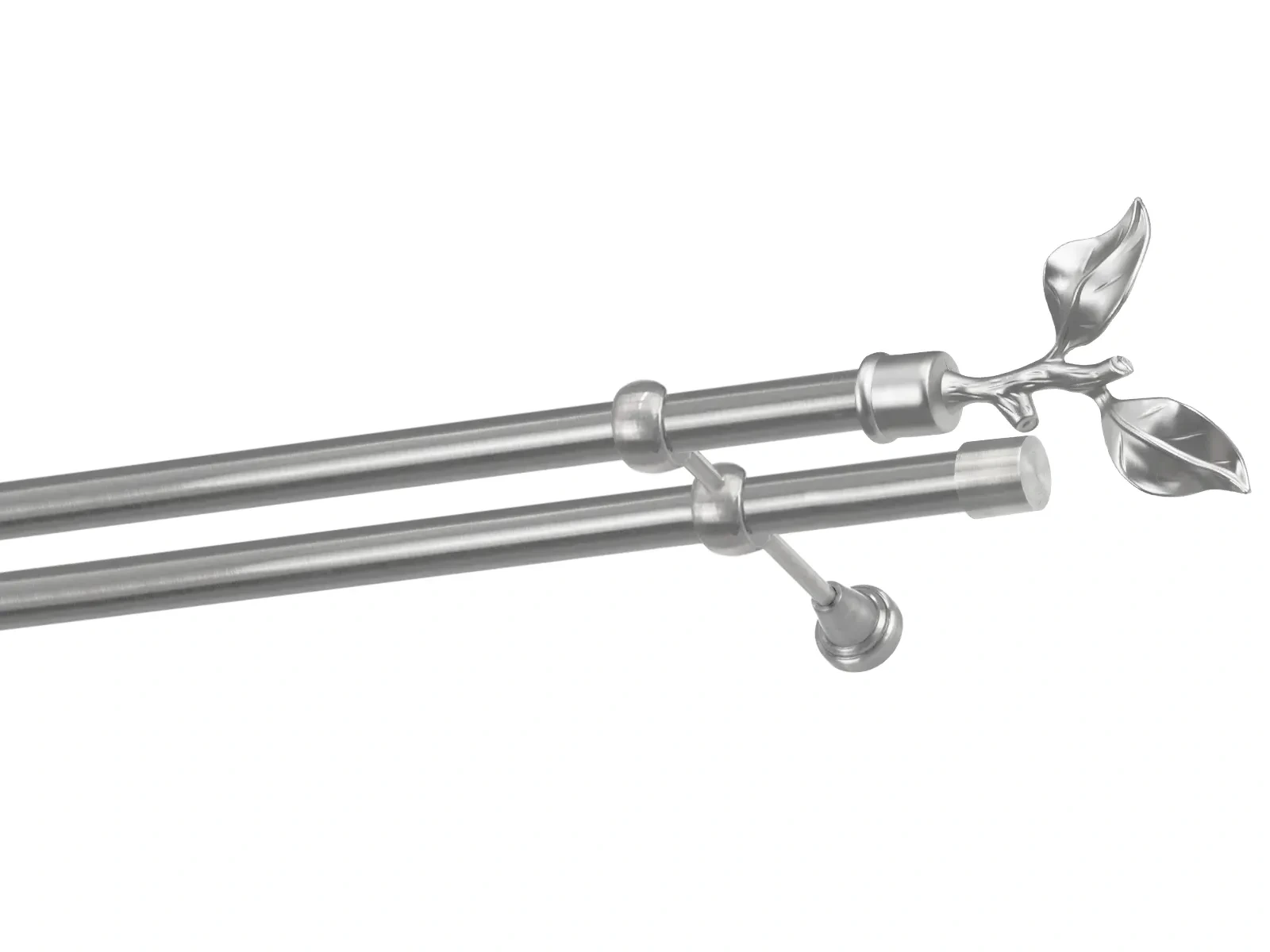 Felületkezelt kétsoros fém függönykarnis satin (matt nikkel) árnyalat. Minőségi galvanizált fém függönykarnisok. A galvanizálás nagyobb felületi szilárdságot, nagyobb karcállóságot és sima felületet biztosít. Készletként szállítjuk.