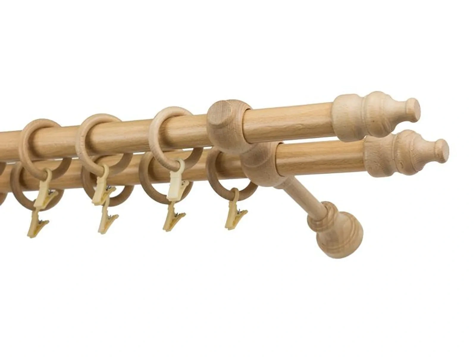 Végzárók, tartókonzolok és a karikák fából vannak. A rúd fából készül (olyan technológiával van gyártva, amilyennel vannak gyártva a fa ablakok is – ami kiküszöböli a hőhajlítást) és színre van fóliázva. Szettként vannak szállítva.