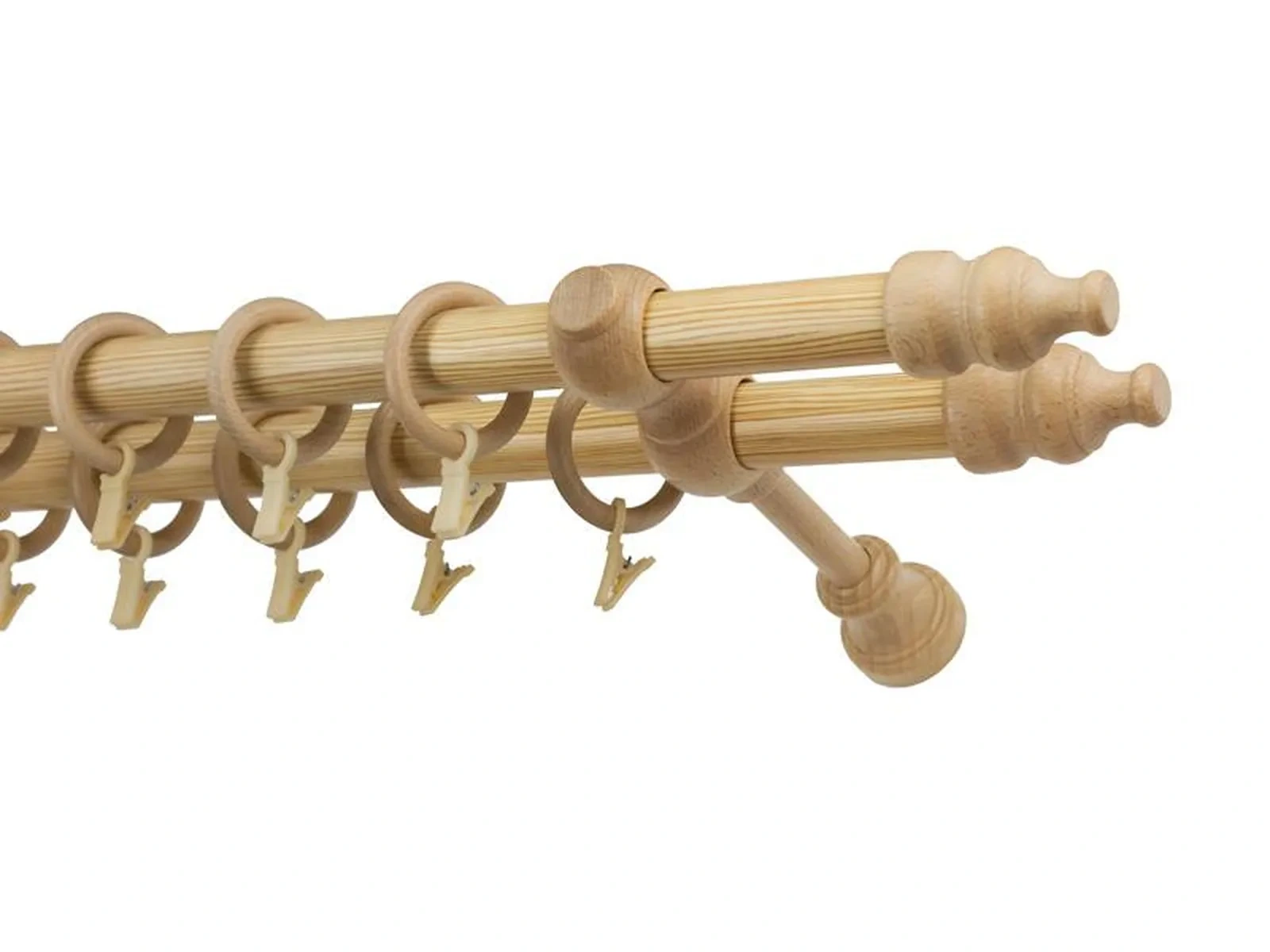 Végzárók, tartókonzolok és a karikák fából vannak. A rúd fából készül (olyan technológiával van gyártva, amilyennel vannak gyártva a fa ablakok is – ami kiküszöböli a hőhajlítást) és színre van fóliázva. Szettként vannak szállítva.