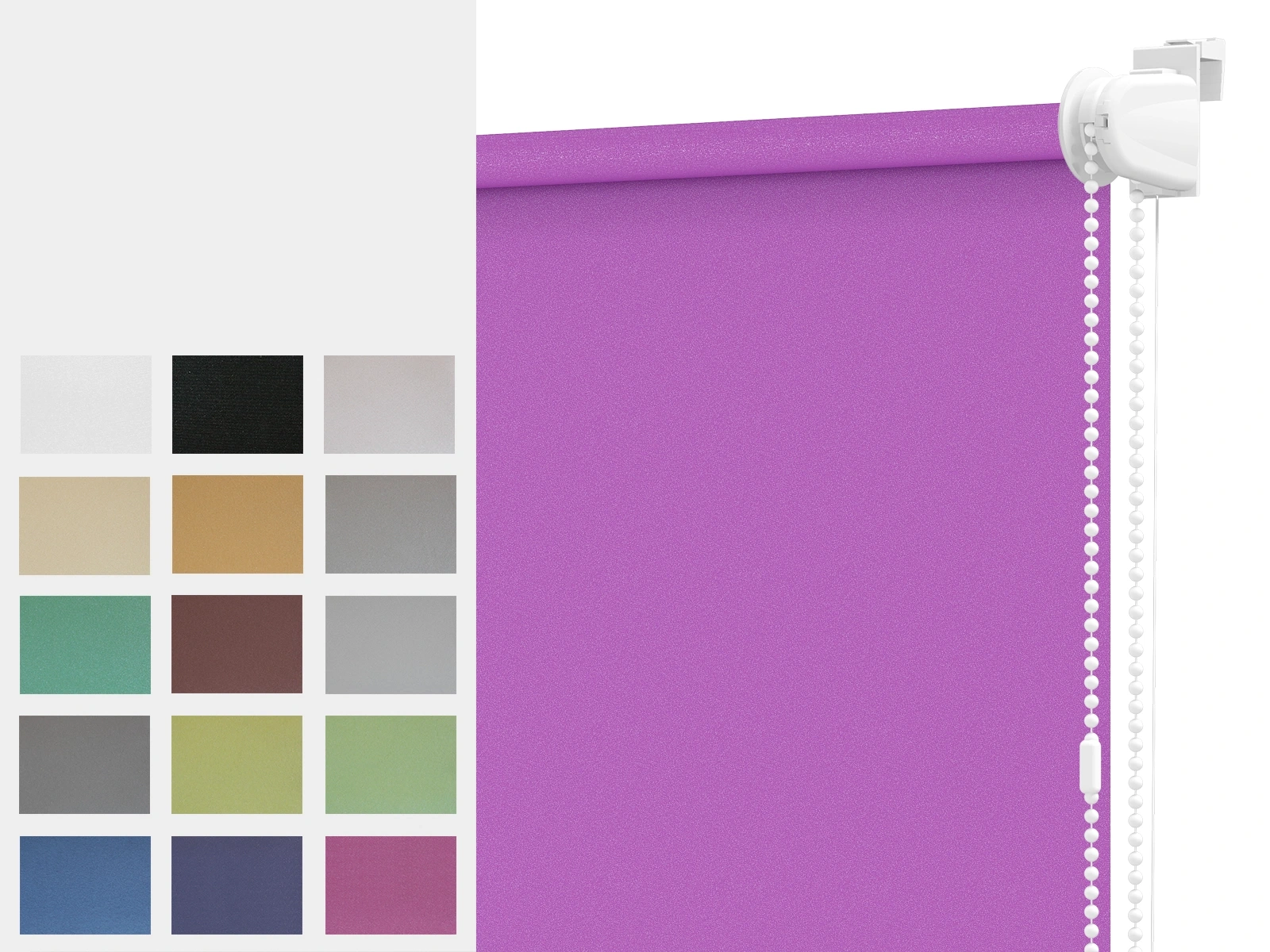Bukó ablakoknál javasoljuk a damil használatát, amely az üveg mellett vezeti a szövetet, és megakadályozza annak elmozdulását az ablak nyitásakor vagy zárásakor. A felső mechanizmus 48 mm-re nyúlik be a térbe, és 17 mm átmérőjű tengelyt tartalmaz, ami biztosítja a szövet egyenletes feltekeredését, valamint a roló sima és csendes működését.