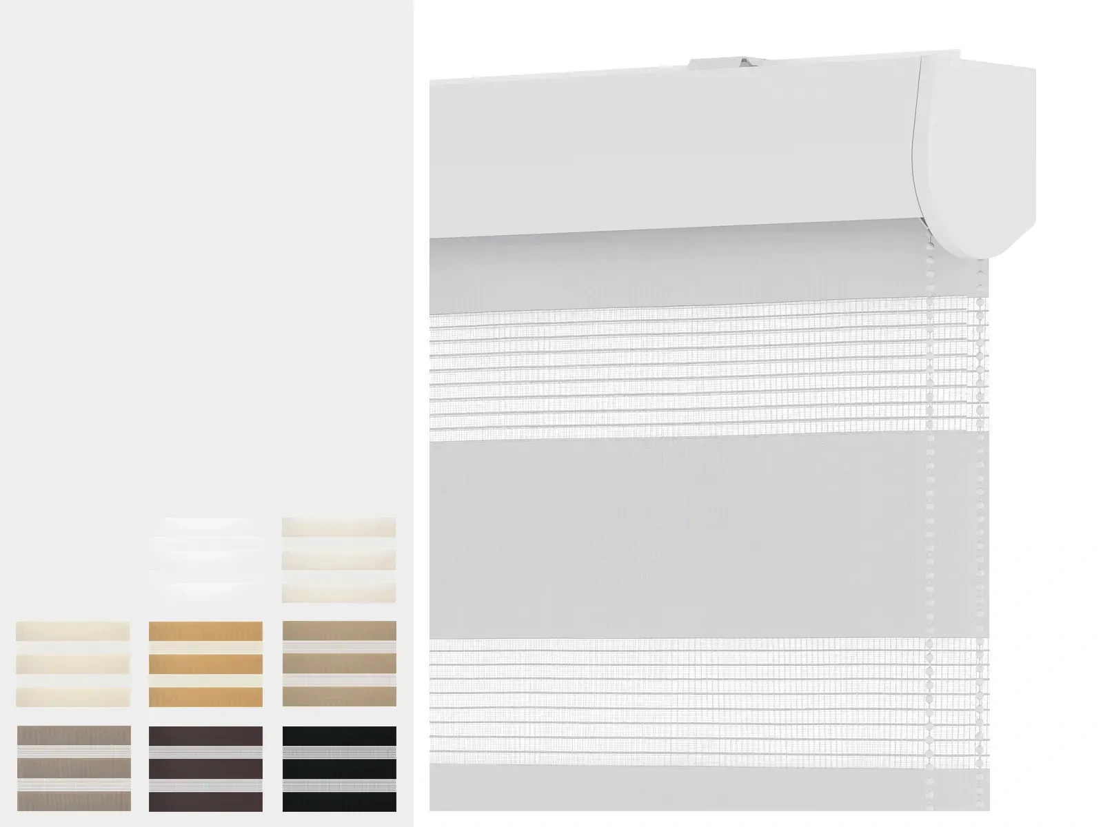 Egyszerű felszerelés CLICK SYSTEM-el. A NOBLE roló karnisa alumíniumból készül. Termékeink minőségét garantáljuk.