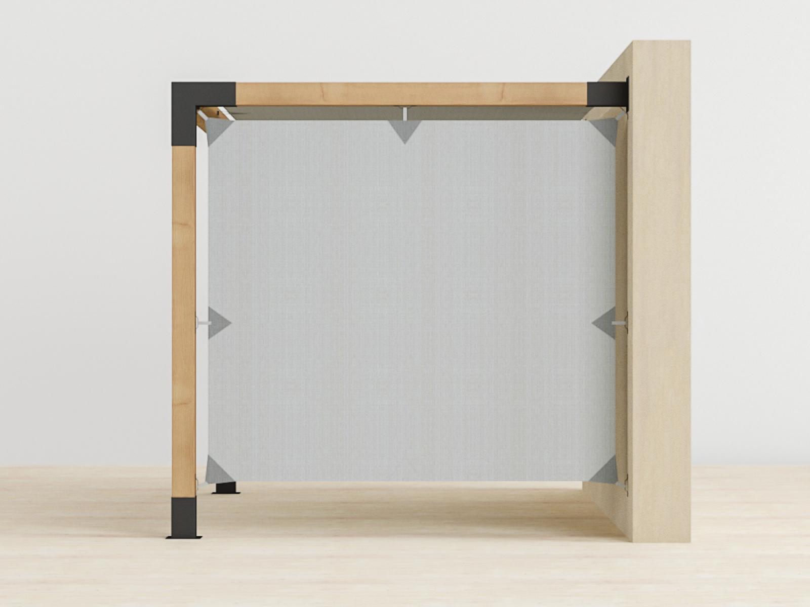 - Podľa roztiahnutej plachty v miestach upínacích praciek na plachte priskrutkujte na hranol priame upínače plachty.