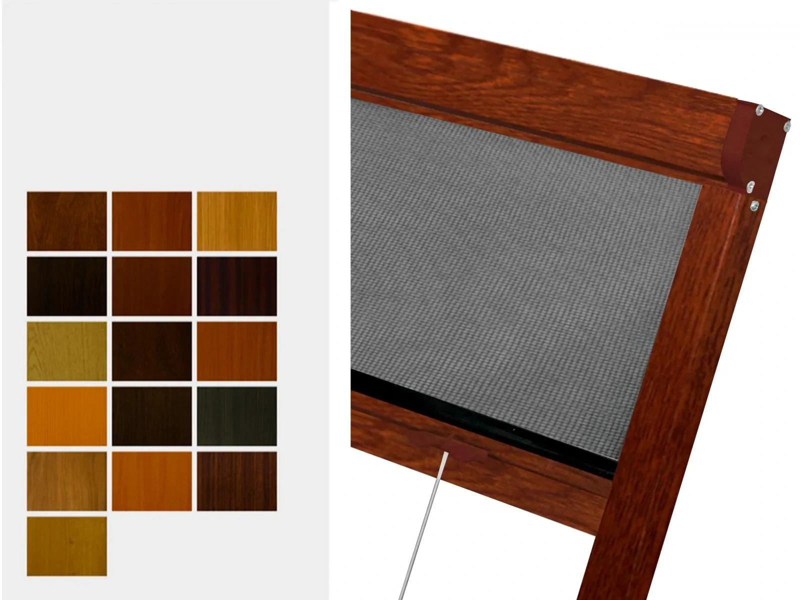 A Renolit kivitelű szúnyoghálók alumíniumból készülnek, amely faimitációs fóliával van bevonva, ugyan úgy, mint a faimitáció kivitelű műanyag ablakok. A használt megnevezések, a RENOLIT fólia eredeti nevei. Felhívjuk a figyelmét, hogy a monitoron megjelenő színek, nem mindig felelnek meg a valóságnak.