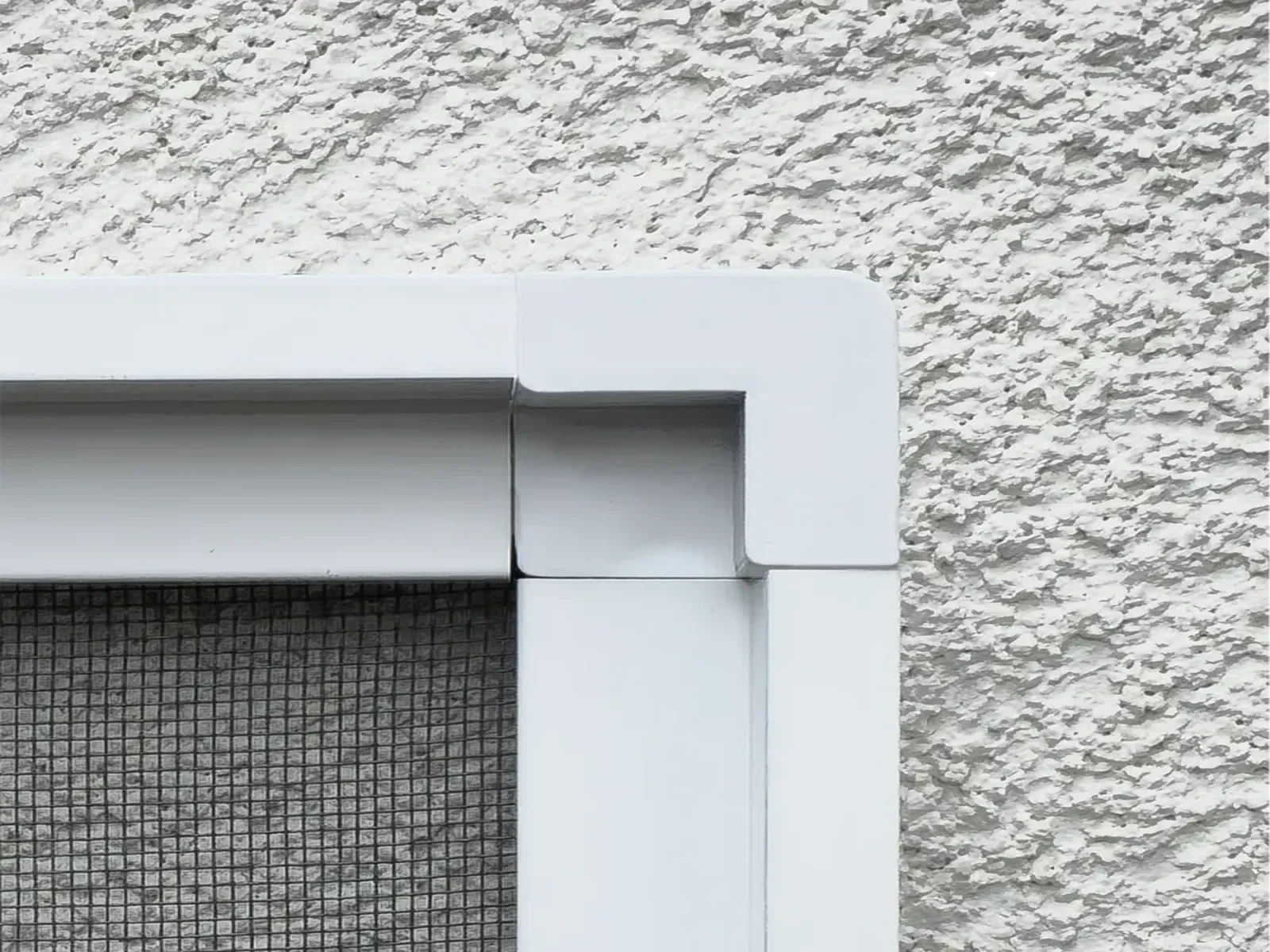 Sieťky proti hmyzu na OKNO - pevné KLIK sa odlišujú od modelu LUX v tom, že rohový spájač je plastový a viditeľný. Profily sú rezané pod 90° uhlom.