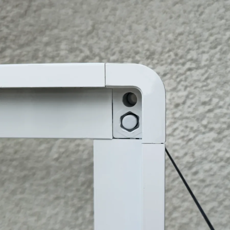 Pri modely LUX sú rezané pod 45° uhlom a rohový spájač je vnútorný a teda pohľadovo neviditeľný. Napínanie je priamo v profile, kedy stačí posunúť napínač v profile, bez potreby demontáže výrobku.