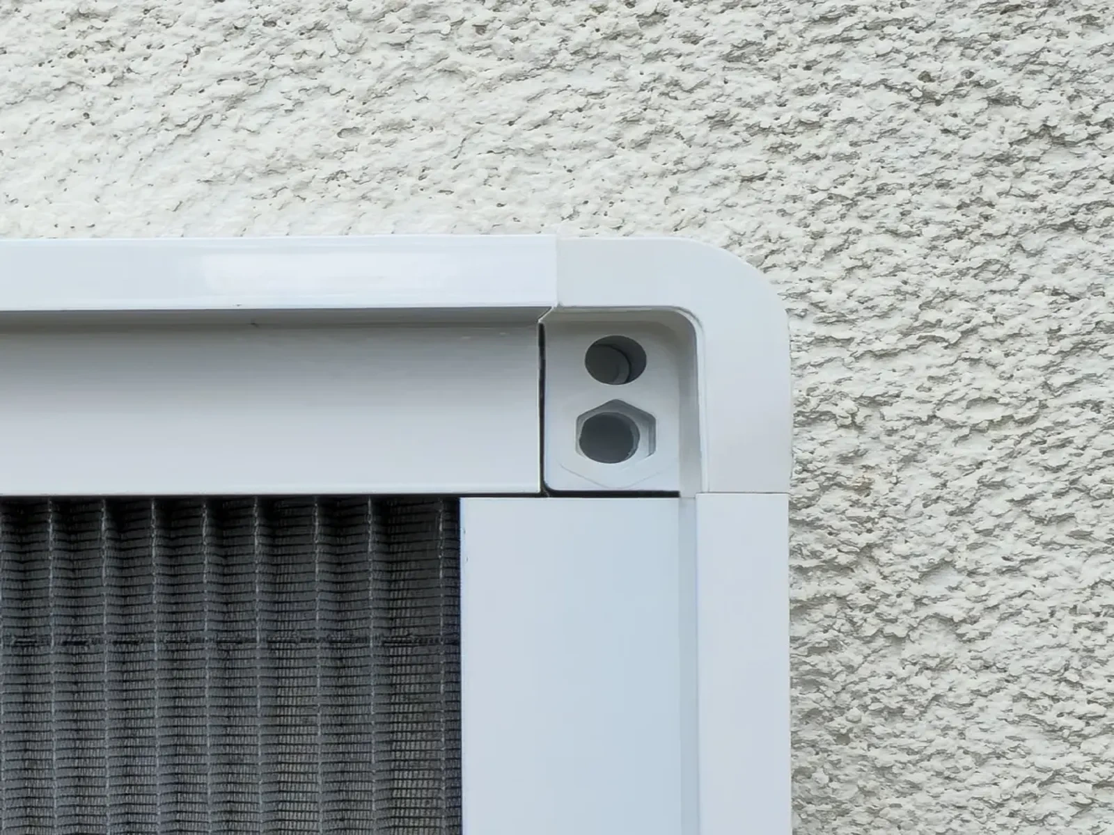 Sieťky proti hmyzu na OKNO - PLISSÉ KLIK sa odlišujú od modelu LUX v tom, že rohový spájač je plastový a viditeľný. Profily sú rezané pod 90° uhlom. Napínanie je šnúrou v rohovom spájači.