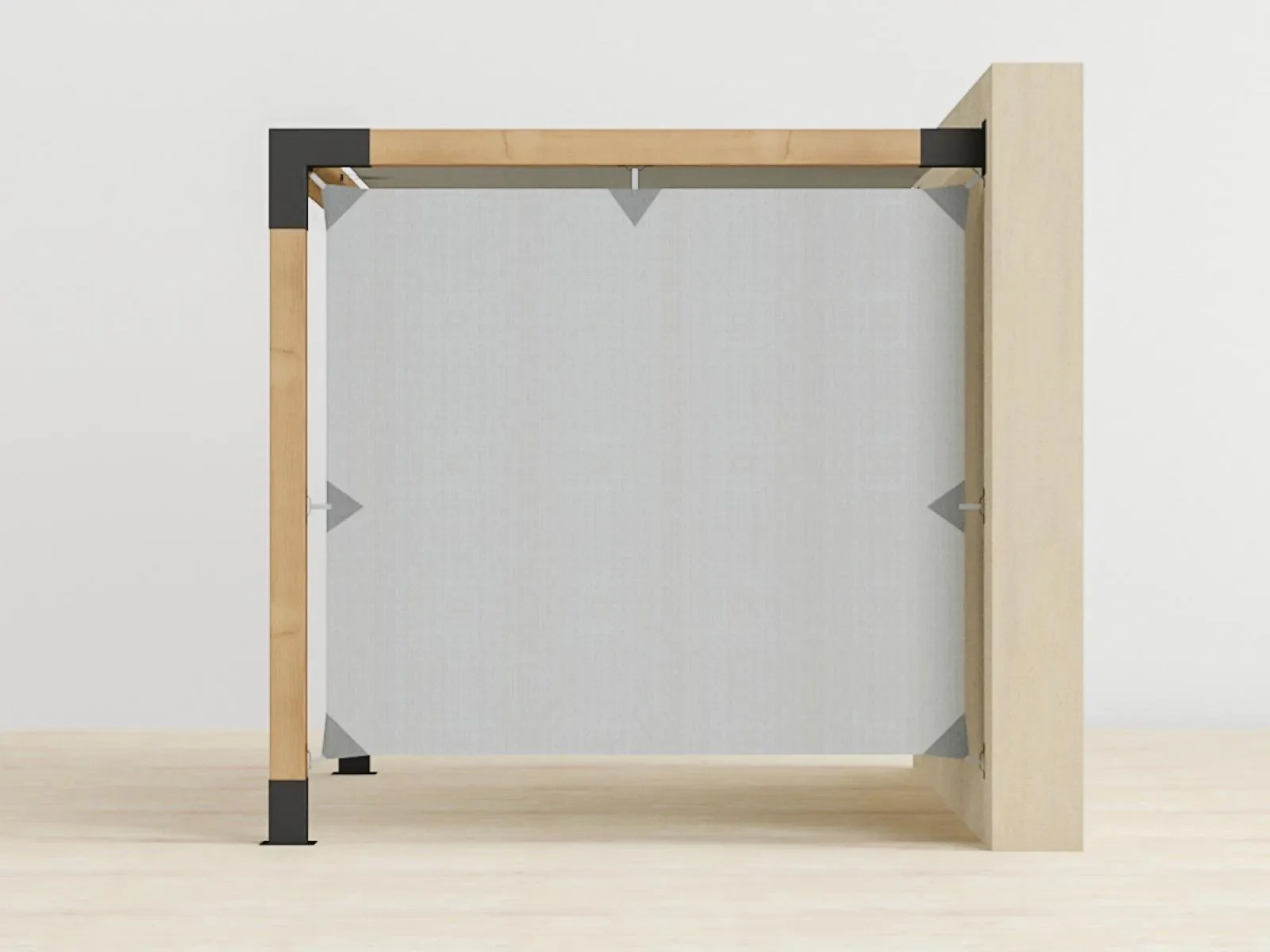 - Helyezze a pergolát a telepítés helyére és rögzítse.