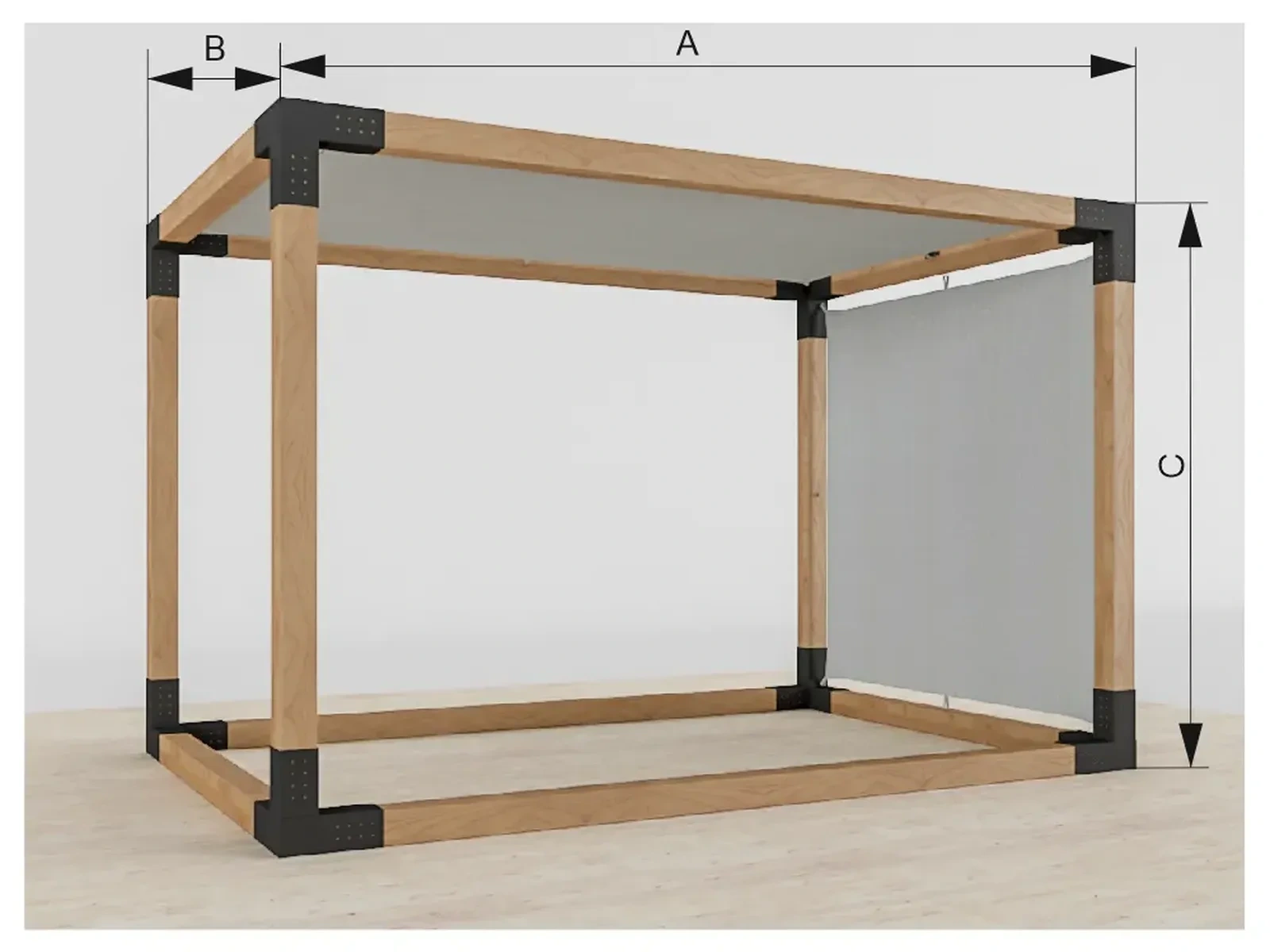 - Helyezze a C (magasság) oldali gerendákat az oszloptartókba és csavarozza be őket. Ügyeljen arra, hogy a gerendák teljesen be legyenek tolva az oszloptartókba.